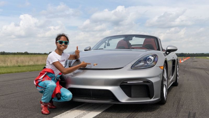 Porsche 718 Spyder sets a New Guinness World Records for the Fastest Vehicle Slalom with a 16 year old girl behind wheels